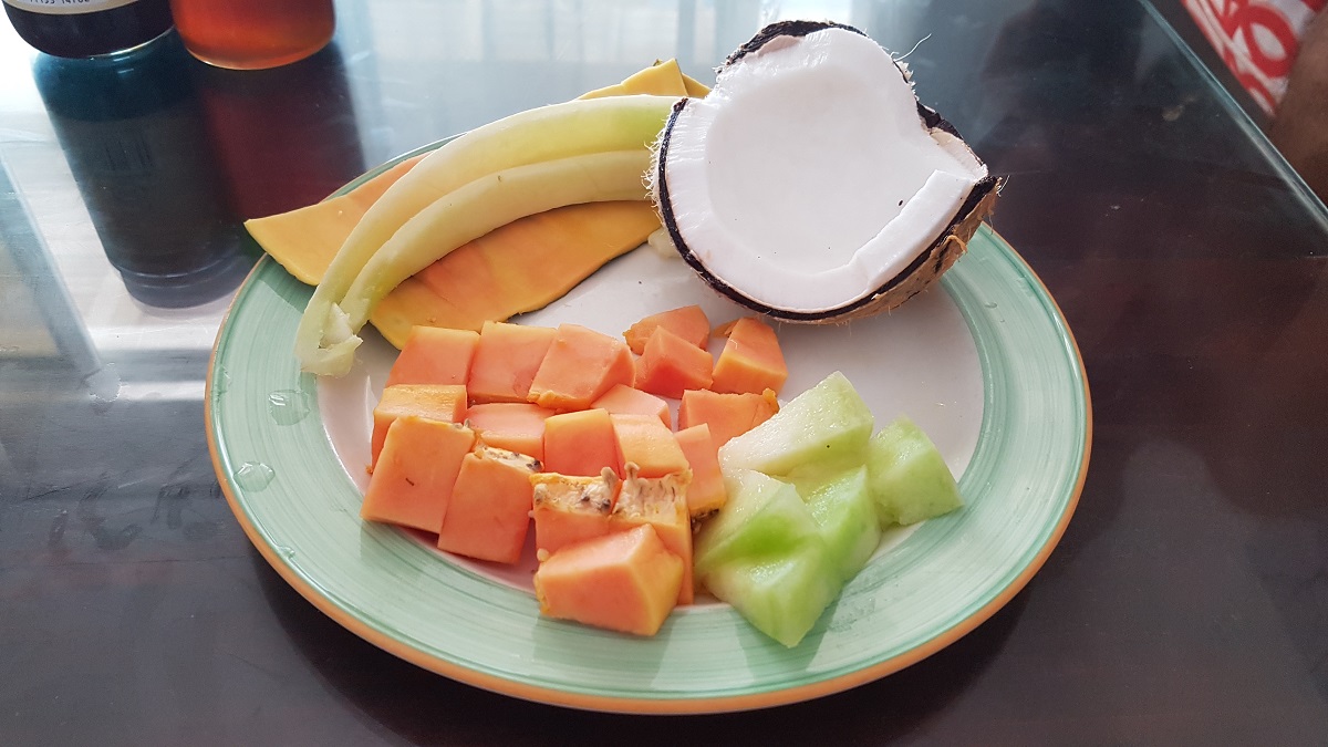 Another breakfast of champions. This time with coconut from the tree just outside the room.