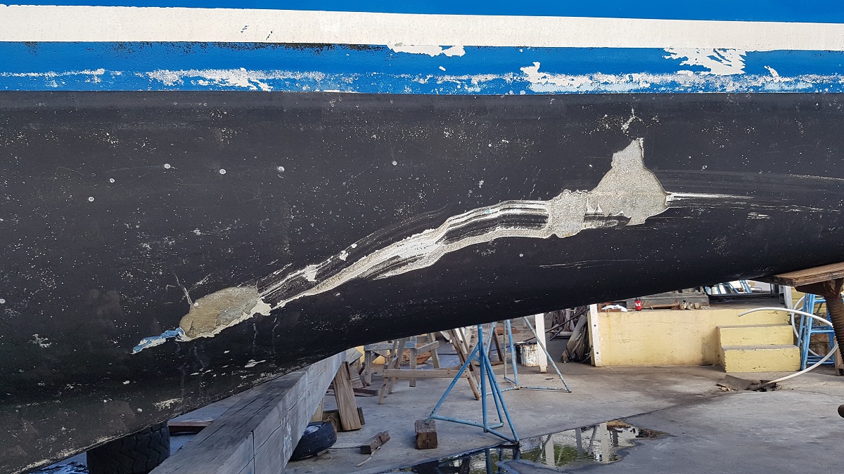 The damage caused by scraping an unmarked wreck off of Point-à-Pitre, Guadeloupe.