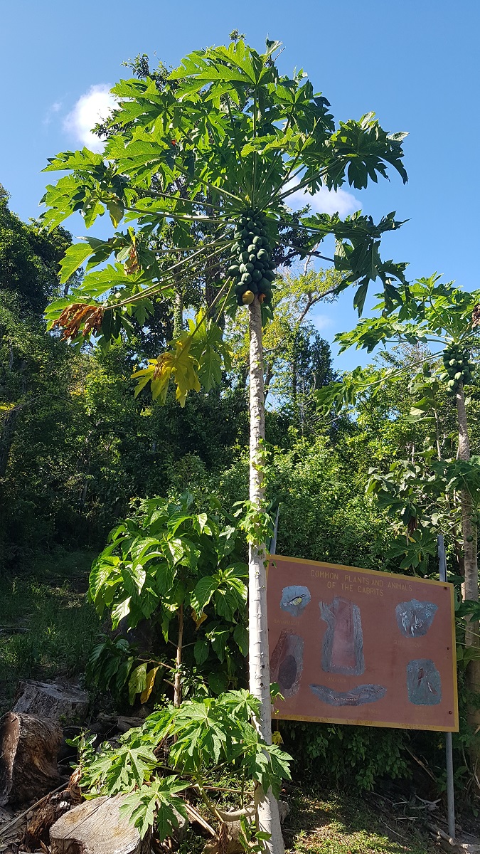 Papaya tree at the entrance to one of two trails on the Cabrits.