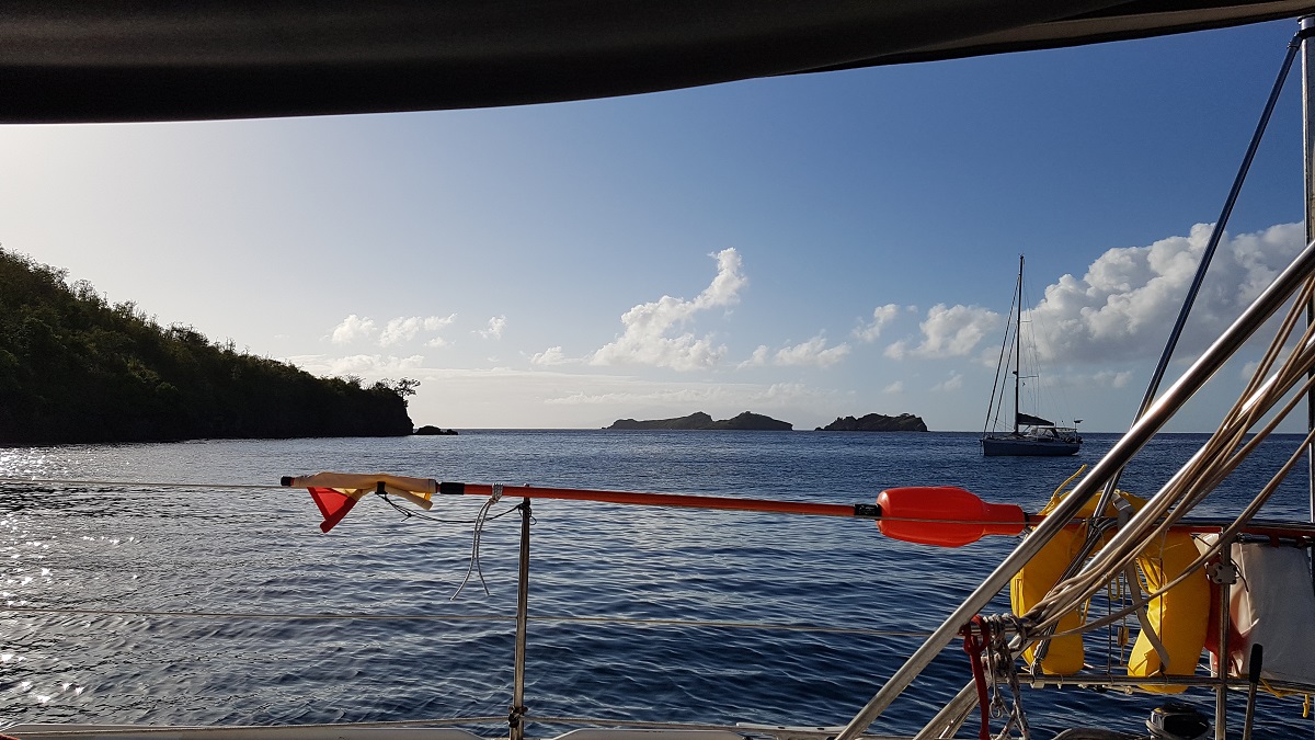 Waking up in our rolly anchorage in the bay of Terre-de-Basse on the way to Point-à-Pitre.