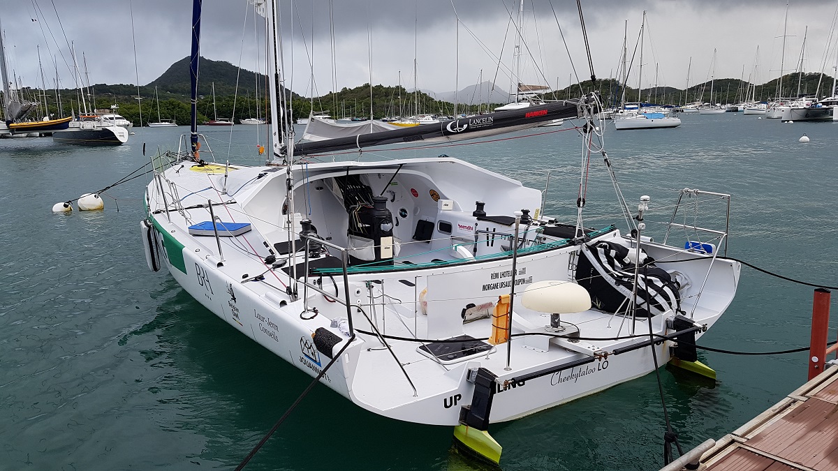 A fancy racing yacht in the marina at Le Marin. Sleek.